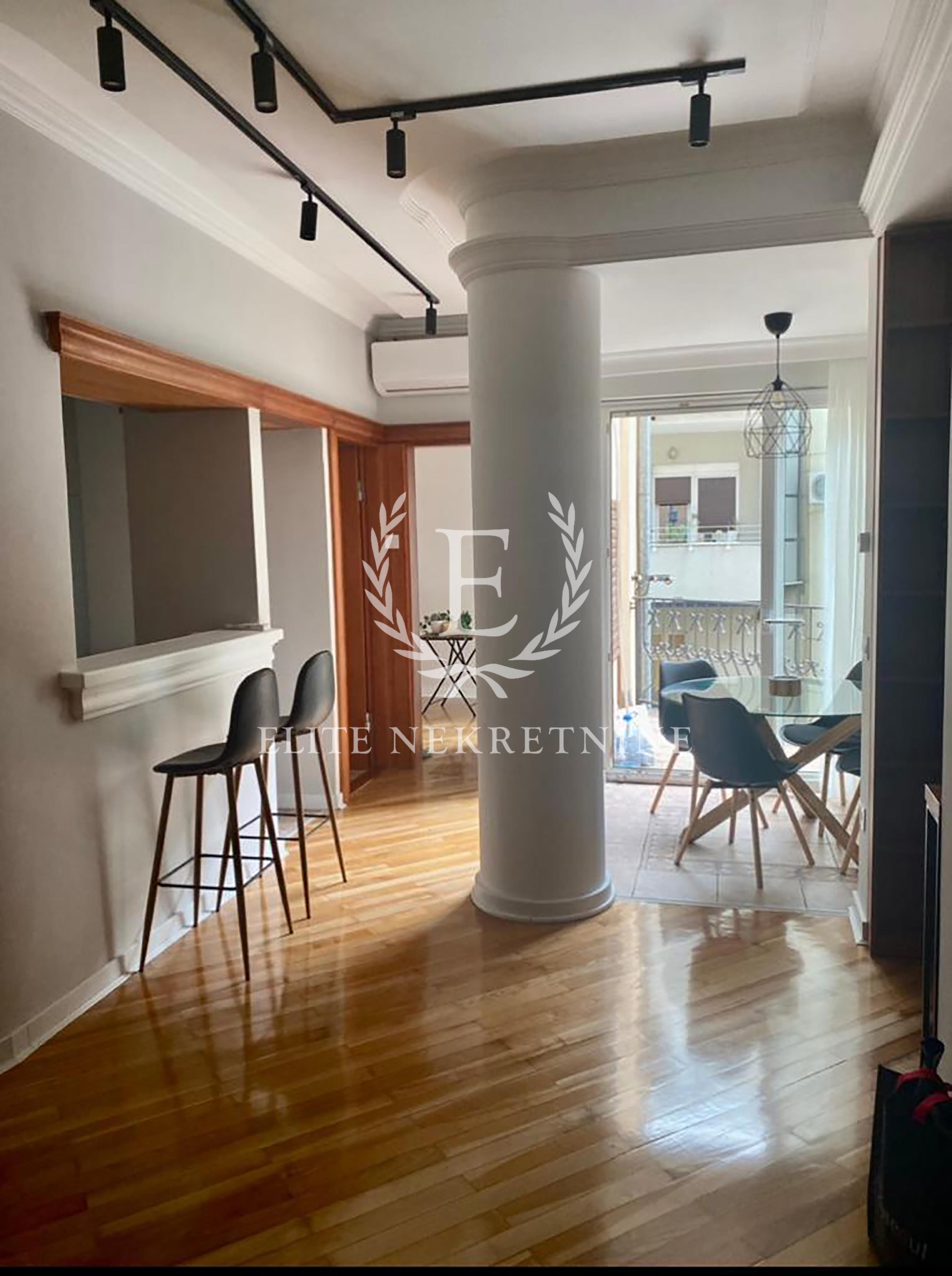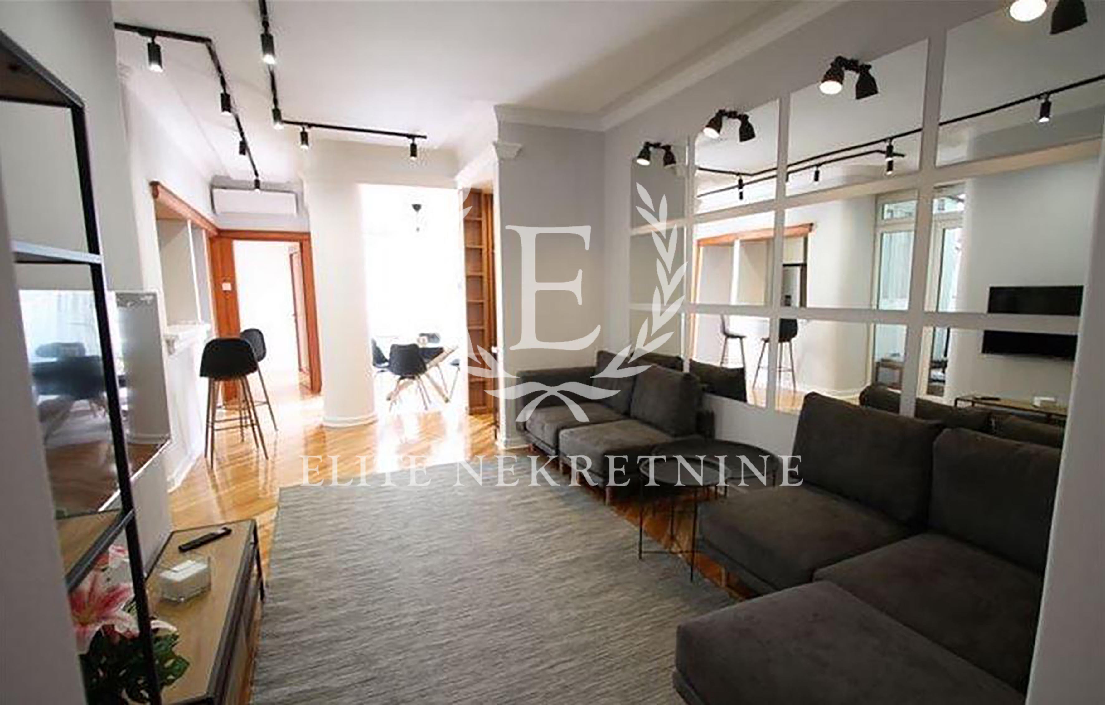 U ponudi je izuzetan, potpuno renoviran stan površine 100m², smešten na drugom spratu uredne zgrade u jednoj od najtraženijih lokacija u gradu — u neposrednoj blizini Hrama.